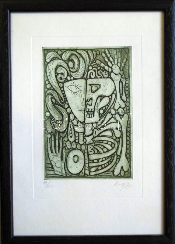 Kass János (1927-2010): Mulandóság, rézkarc, papír, jelzett, üvegezett...