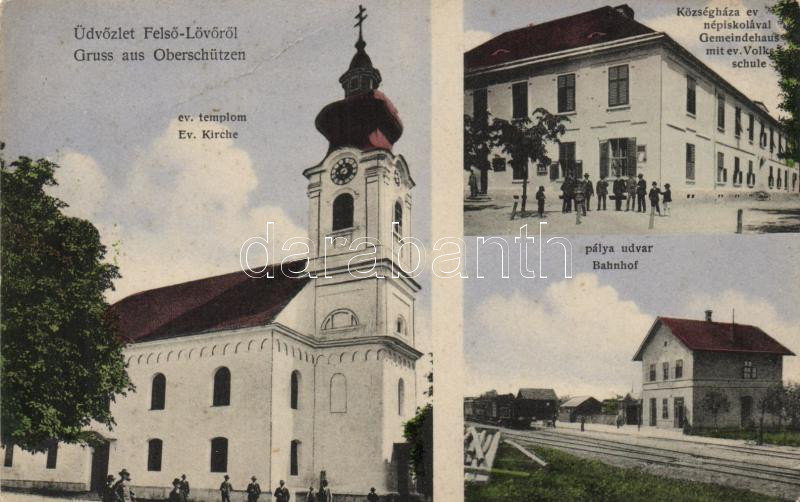Felsőlövő railway station, County Hall, Evangelist church and school (...
