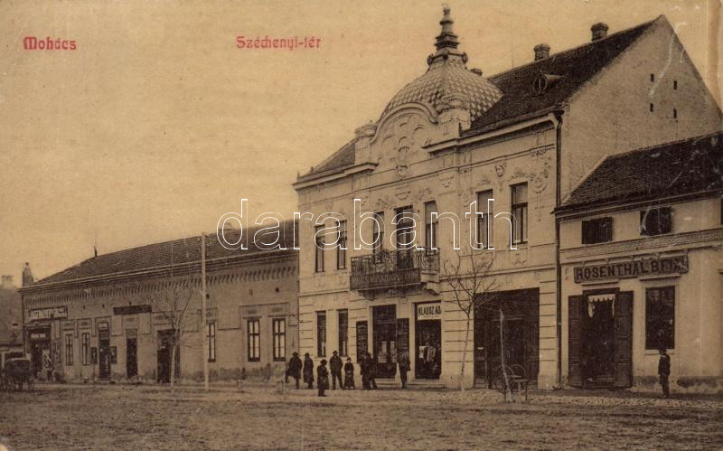 Mohács Széchenyi tér, Klausz Ádám üzlete, Rosenthal Béla üzlete, Közga...