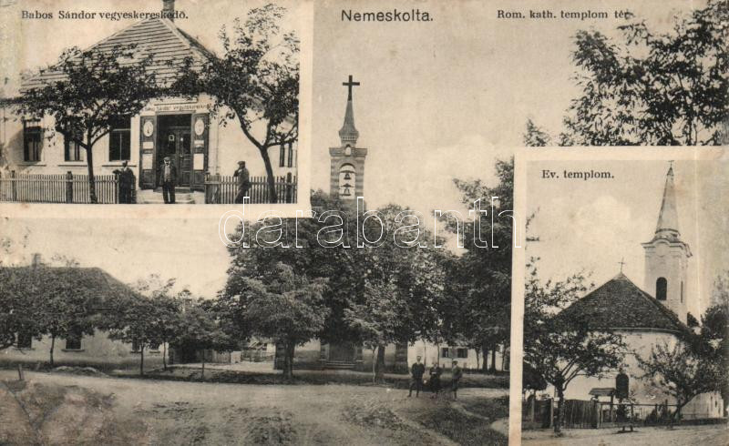Nemeskolta Babos Sándor vegyeskereskedése, Evangélikus és Római katoli...
