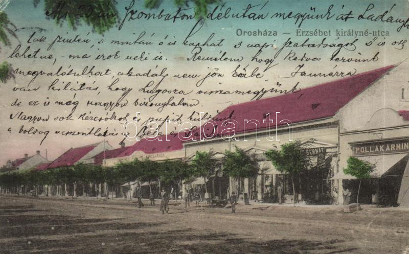 https://www.darabanth.com/en/172-Online-auction/172.0/Postcards/Hungary~5000005/Oroshaza-Erzsebet-kiralyne-utca-Pollak-Armin-kereskedese-szalloda~II586894