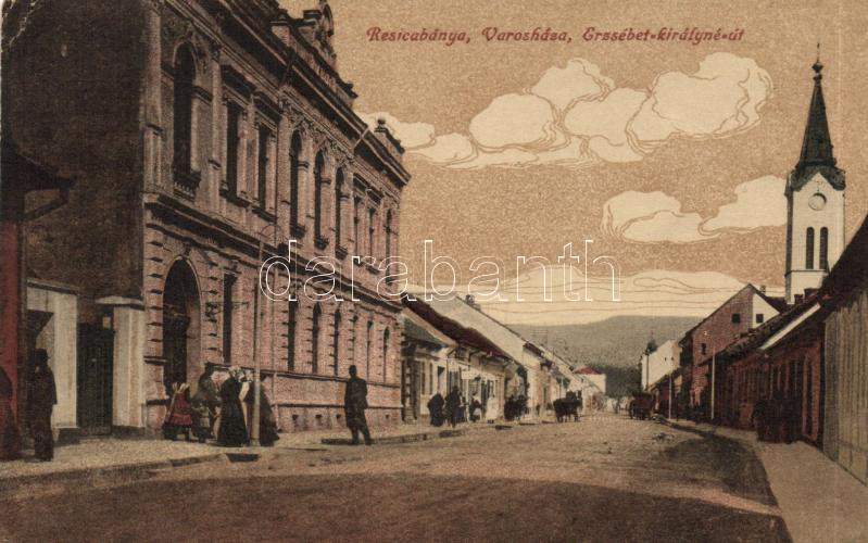 https://www.darabanth.com/en/172-Online-auction/172.0/Postcards/Transylvania~5000006/Resicabanya-Erzsebet-street-town-hall-EK~II585062