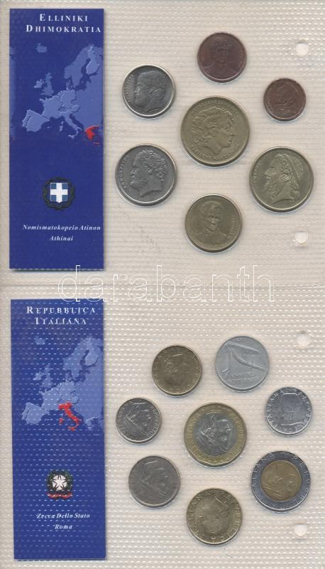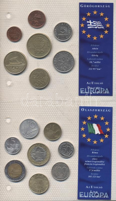 Description: Görögország 1988-2000. 1Dr-100Dr 7klf darab "Az utolsó Drachma forgalmi pénzek" szettben T:1,2 / Olaszország 1955-1998. 5L-1000L 8klf darab "Az utolsó Frank forgalmi pénzek" szettben T:1,2,3
