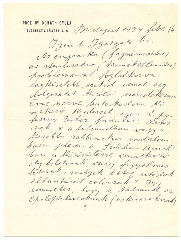 1934 Donáth Gyula orvos saját kézzel írt levele, melyben fajnemesítés ... https://www.darabanth.com/en/173-Online-auction/173.0/Other-collectibles/Historical-documents-manuscripts~4000026/1934-Donath-Gyula-orvos-sajat-kezzel-irt-levele-melyben-fajnemesites-es-sterilizacio-temC3~II592811