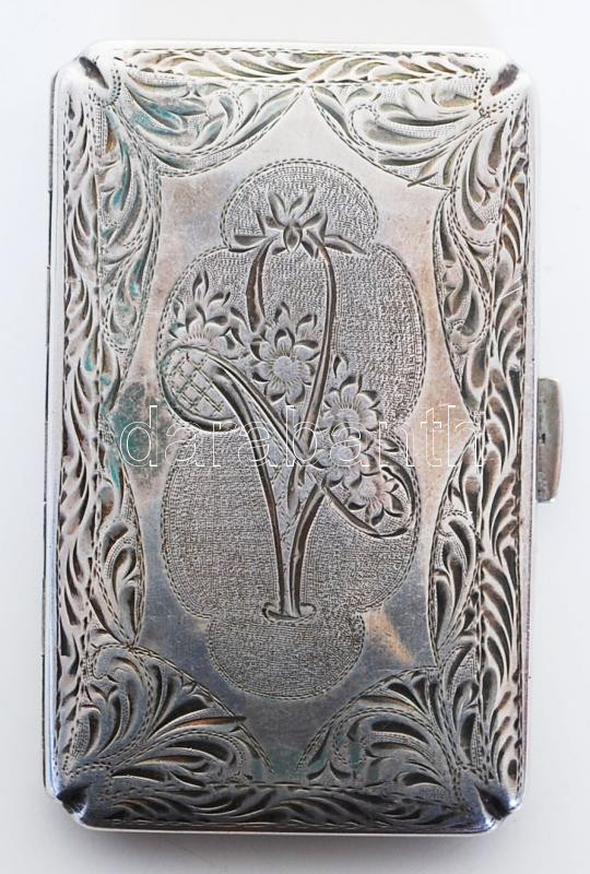 Silver cigarette case of 935 fineness, with floral decoration, inside gold plating and inscription (1st price on a chess championship in Budapest, 1933), 8x5cm, 50,6gr