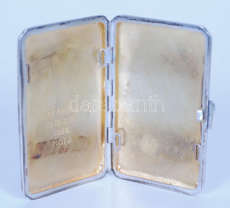 1933 Ezüst (Ag) cigarettatárca vésett, griluzsált növényi díszítéssel, 935-ös tisztaságjelzéssel, belsején aranyozással, és "Sakkverseny BBTE 1933. I. díj" gravírozással /