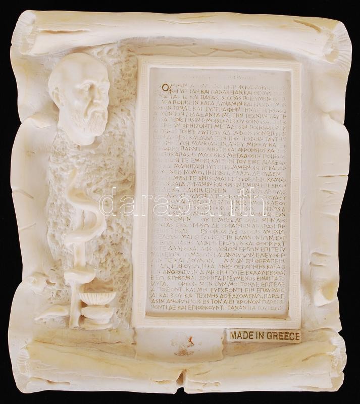Hippokratész és esküje görögül, alabástrom plasztika, alabástrom tartó...