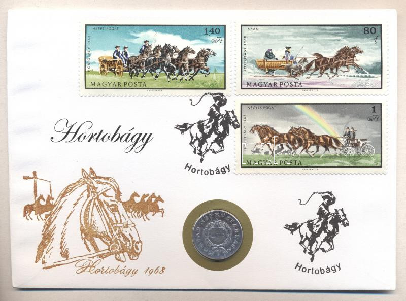 https://www.darabanth.com/en/174-Online-auction/174.0/Numismatics/Envelopes-with-Coins-and-Banknotes~2200137/1968-1Ft-Hortobagy-ermes-belyeges-boritek-alkalmi-belyegzovel-es-3-belyeggel-T2-~II599232