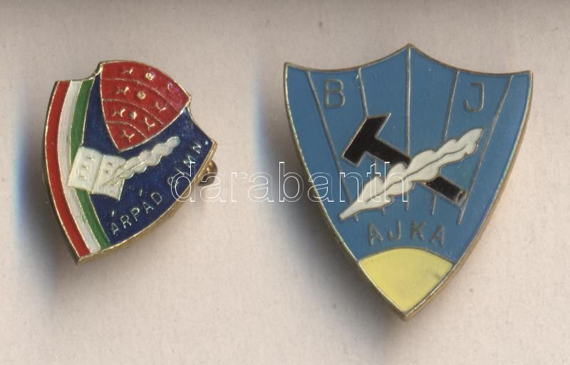 "Árpád Gimnázium" + "B.J. Ajka" hidegzománc iskolajelvények T:2