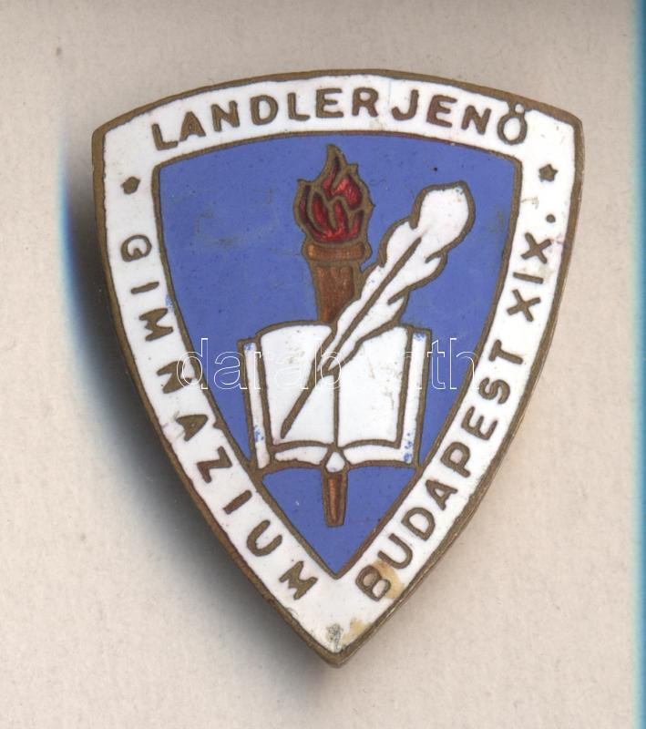 "Landler Jenő Gimnázium Budapest XIX" zománcozott iskolajelvény T:2