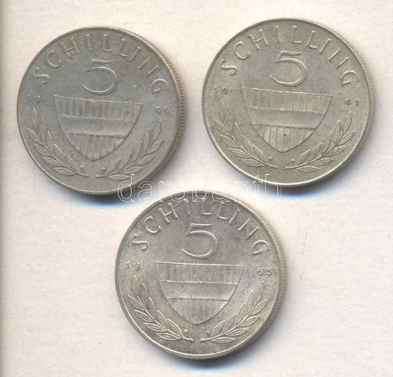 Austria 1960-65. 5 Schilling Ag (3x) C:XF,VF