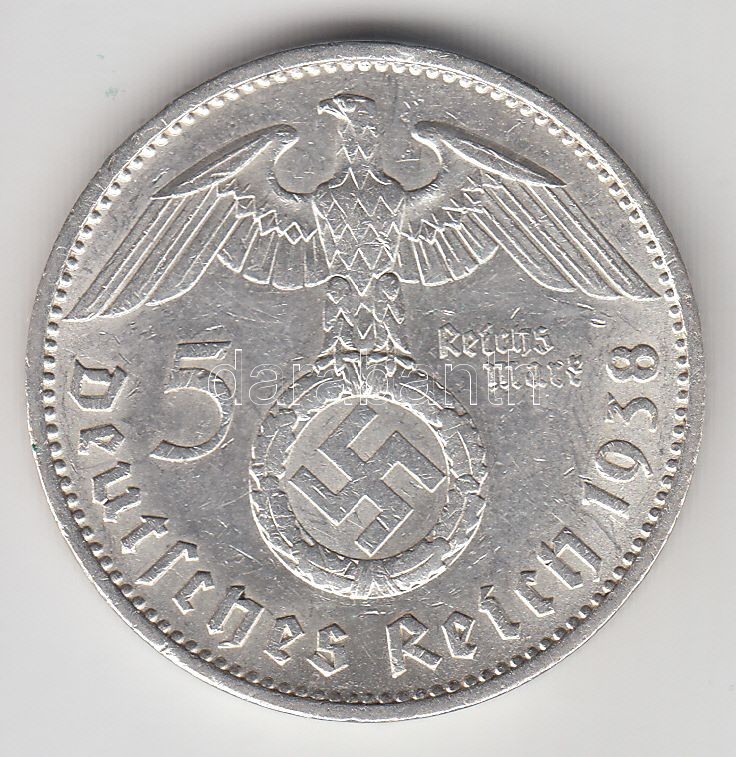 https://www.darabanth.com/en/174-Online-auction/174.0/Numismatics/Foreign-coins~2200145/Nemet-3-Birodalom-1938A-5M-Ag-Hindenburg-T2--3Cbr3EGerman-Third-Reich-1938A-5-Marks-Ag-Hindenbu~II595623