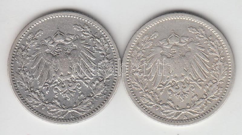 Német Birodalom 1905A-E 1/2M Ag (2x) T:3
