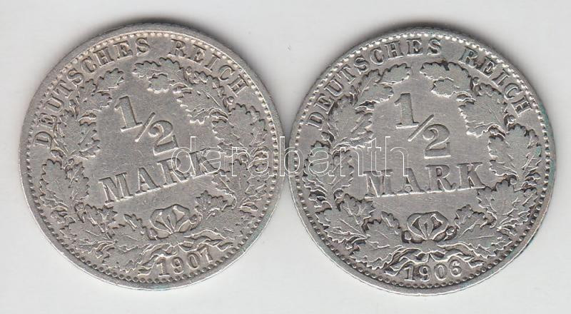 Német Birodalom 1906D-1907A 1/2M Ag (2x) T:3