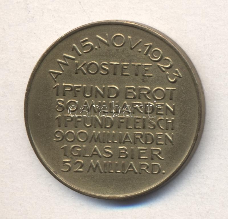 Német Birodalom / Weimari Köztársaság 1923. "Des Deutschen Volkes Leidensweg / "AM 15. NOV. 1923 KOSTETE 1 PFUND BROT 80 MILLIARDEN / 1 PFUND FLEISCH 900 MILLIARDEN / 1 GLAS BIER 52 MILLIARDEN" Br emlékérem (31mm) T:2