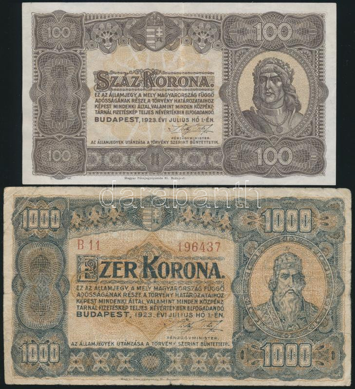 https://www.darabanth.com/en/174-Online-auction/174.0/Numismatics/Hungarian-banknotes~2200140/1912-100K-piros-Magyarorszag-felulbelyegzessel-plus-1920-1000K-Orell-Fussli-Zurich-plus-1923-~II598686