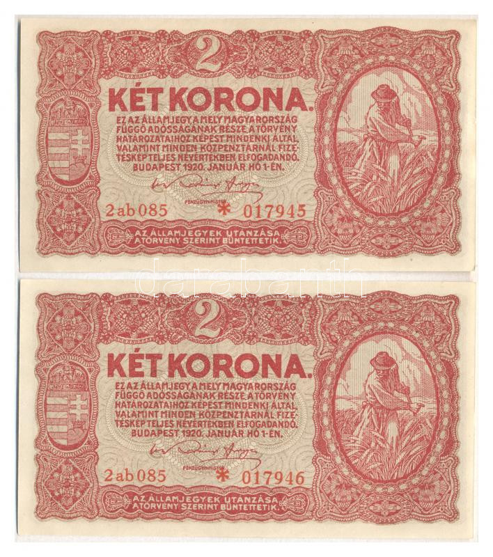 https://www.darabanth.com/en/174-Online-auction/174.0/Numismatics/Hungarian-banknotes~2200140/1920-2K-2ab-2x-egymas-utani-sorszammal-TI~II599388