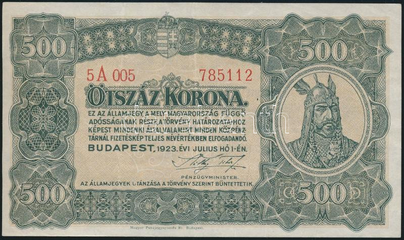 1923. 500K "Magyar Pénzjegynyomda Rt.." T:II