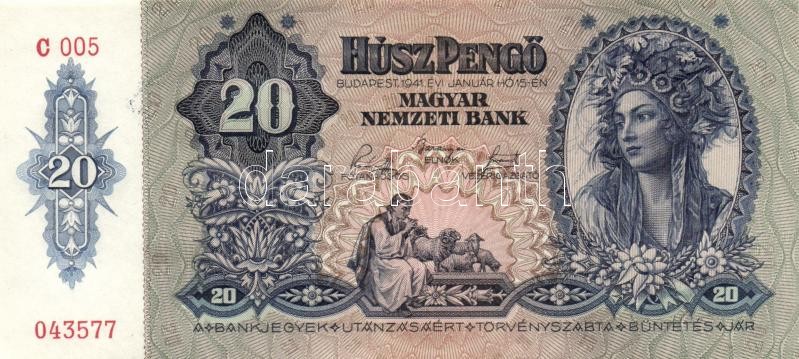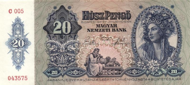 1941. 20P "005" (5x) egymás utáni sorszámmal! T:I