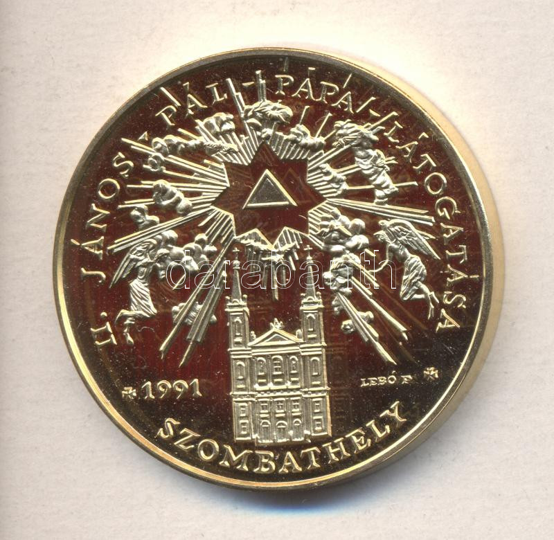 Bognár György (1944-) / Lebó Ferenc (1960-) 1991. "II.János Pál pápa látogatása - Szombathely" aranyozott emlékérem (42,5mm) T:PP