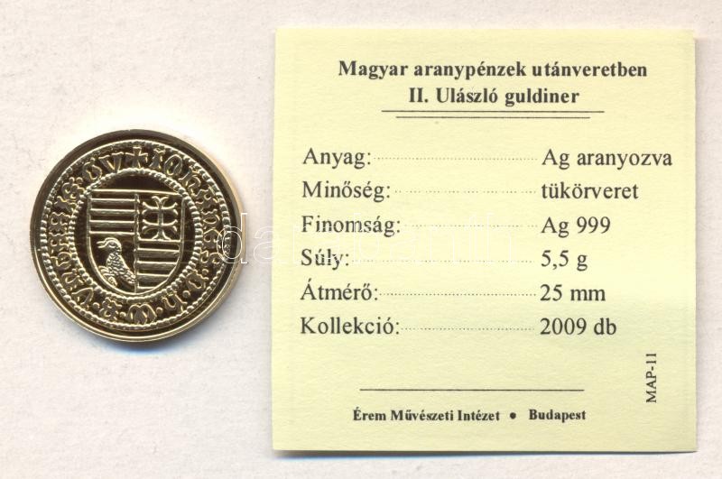 "Magyar aranypénzek utánveretben - II. Ulászló guldiner" aranyozott Ag(0.999) emlékérem (5.5g) T:PP csak 2009db! Tanúsítvánnyal