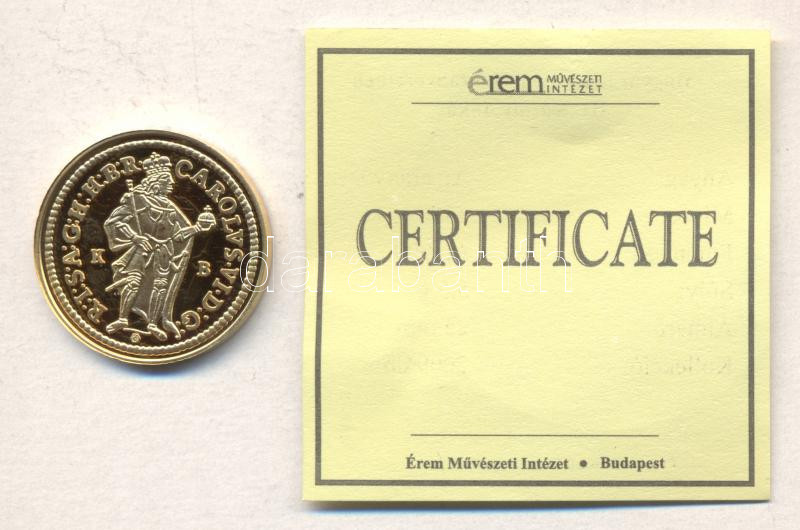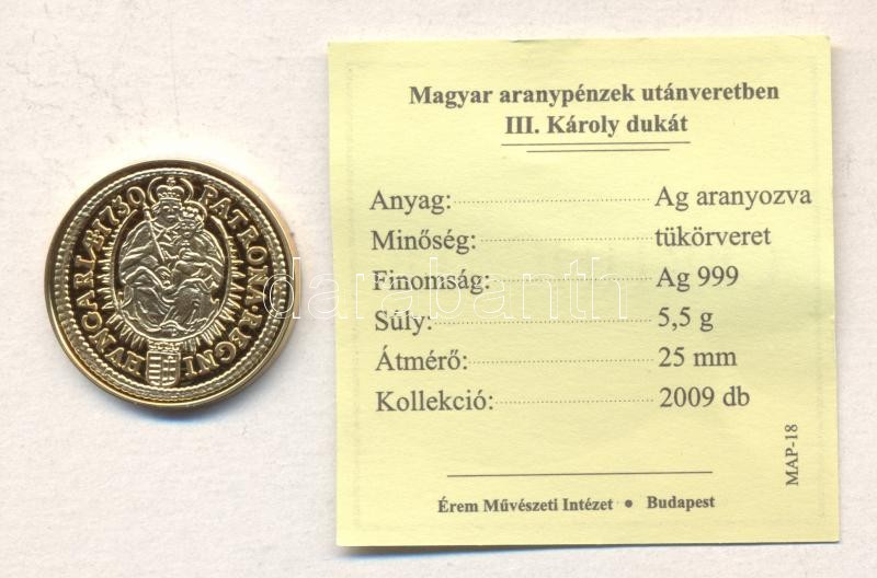 "Magyar aranypénzek utánveretben - III. Károly dukát" aranyozott Ag emlékérem (5.5g) T:PP csak 2009db! Tanúsítvánnyal