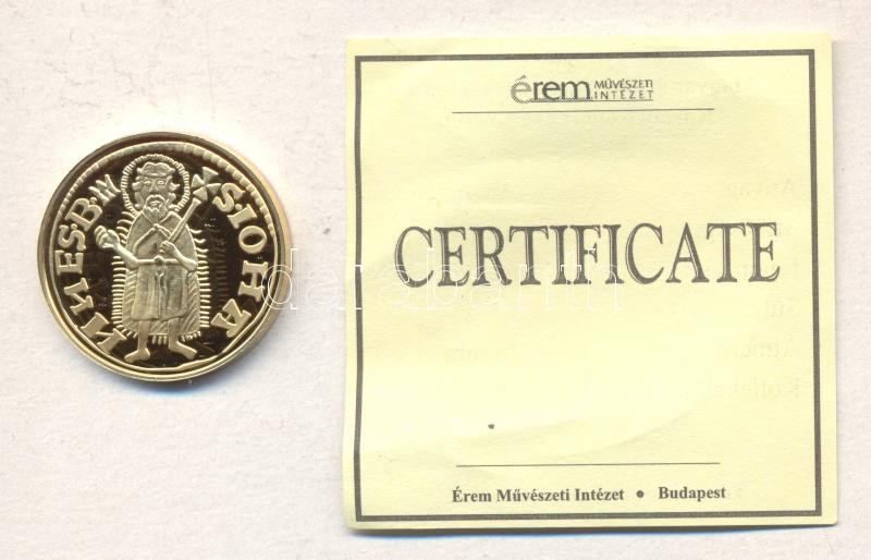 "Magyar aranypénzek utánveretben - Károly Róbert aranyforint" aranyozott Ag(0.999) emlékérem (5.5g) T:PP csak 2009db! Tanúsítvánnyal