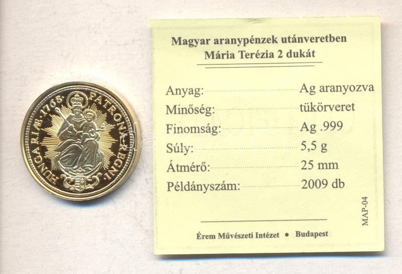 "Magyar aranypénzek utánveretben - Mária Terézia 2 dukát" aranyozott Ag(0.999) emlékérem (5.5g) T:PP csak 2009db! Tanúsítvánnyal
