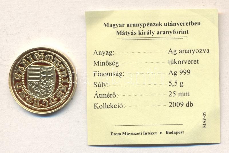 "Magyar aranypénzek utánveretben - Mátyás király aranyforint" aranyozott Ag(0.999) emlékérem (5.5g) T:PP csak 2009db! Tanúsítvánnyal