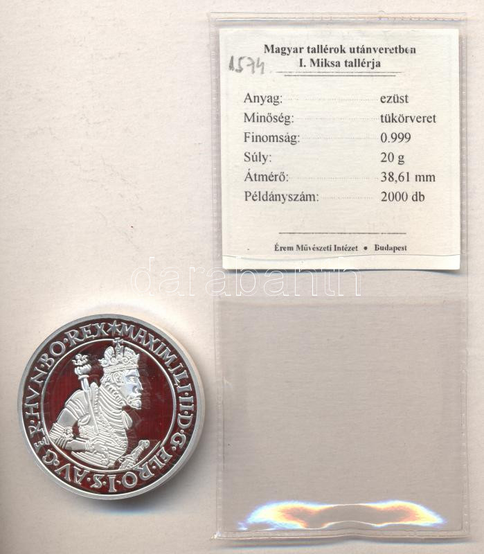 https://www.darabanth.com/en/174-Online-auction/174.0/Numismatics/Hungarian-commemorative-medals-plaques-badges~2200142/Magyar-tallerok-utanveretben-I-Miksa-Tallerja-1574-Ag-0-999-20g-TPP-Tanusitvannyal-csa~II597538