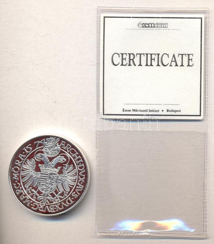 Magyar tallérok utánveretben "I. Miksa Tallérja 1574." Ag (0,999) 20g T:PP Tanúsítvánnyal, csak 2000db!