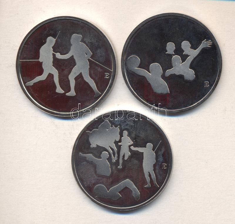 Papp László (1947-) 1992. "Barcelonai Olimpia- Magyar Csapat" (3x) ezüstözött emlékérem 3klf darabja (42,5mm) T:PP
