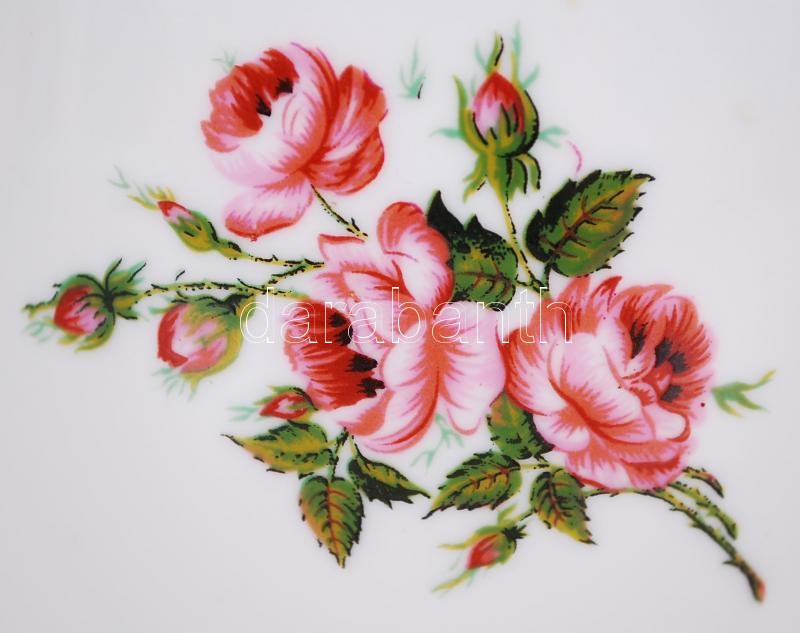 Hollóházi virágokkal díszített porcelán váza, jelzett, hibátlan / Holl...