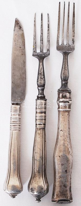 Cca 1850 Ezüst (Ag.) evőeszközök, kettő villa és egy kés, nagy villa j...