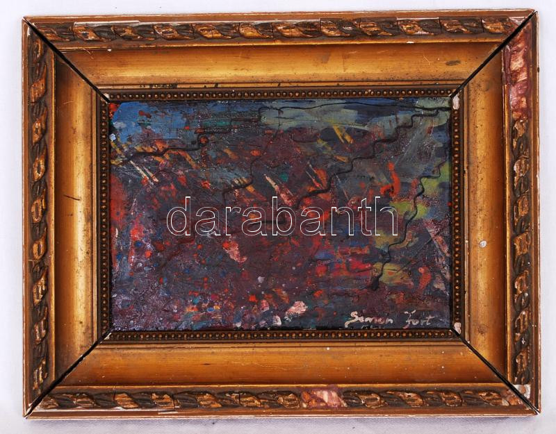 Simon Fort: Cím nélkül, olaj, karton, jelzett, régi sérült keretben, 2...