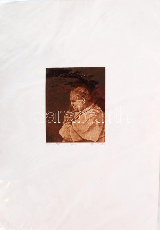 Simon Zoltán (1950-): II. János Pál. Rézkarc, papír, 14×11 cm