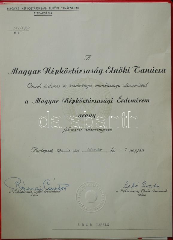 https://www.darabanth.com/en/175-Online-auction/175.0/Numismatics/Faleristics-medals-orders-badges~1200095/1952-1983-3db-szocialista-kituntetes-adomanyozoi-okirata-Magyar-Nepkoztarsasagi-Erdemer~II607455