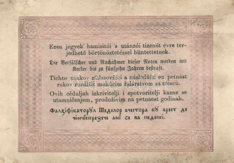 Description: 1848. 5Ft "Kossuth-bankó" barna, hátlap barna keretnyomat és fekete szöveg, a bankjegy grafit ceruzás áthúzással érvénytelenítve/bevonva(?) T:hajtatlan, fo. penészgomba nyomai