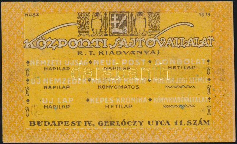 Budapest 1919. Központi Sajtóvállalat R.T. 20f T:III