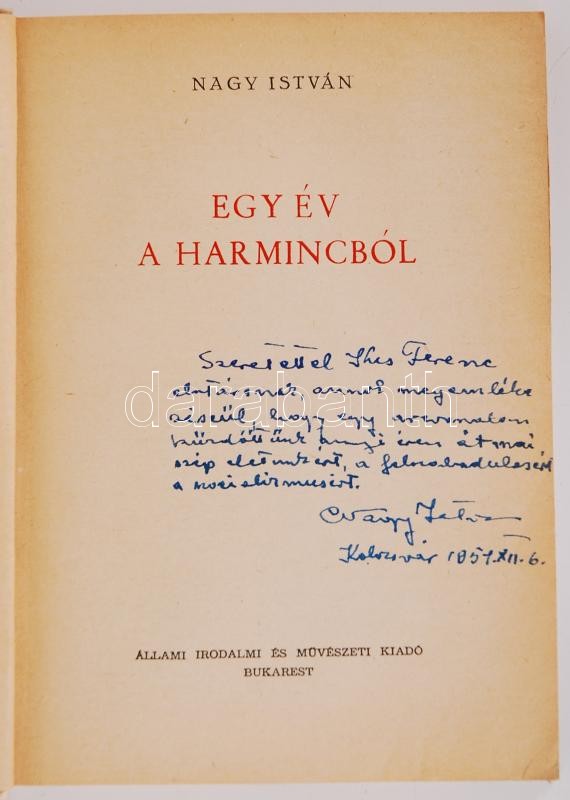 https://www.darabanth.com/en/175-Online-auction/175.0/Other-collectibles/Books-Other-rarities~1000042/Nagy-Istvan-Egy-ev-a-harmincbol-Bukarest-1951-Allami-Irodalmi-es-Muveszeti-Kiado-Illu~II604072