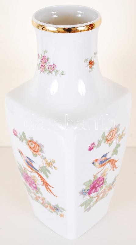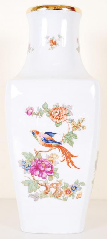 Hollóházi jelzéssel ellátott virágokkal és madárral díszített nagyméretű porcelán váza / Hollóházi chinaware vase 37 cm