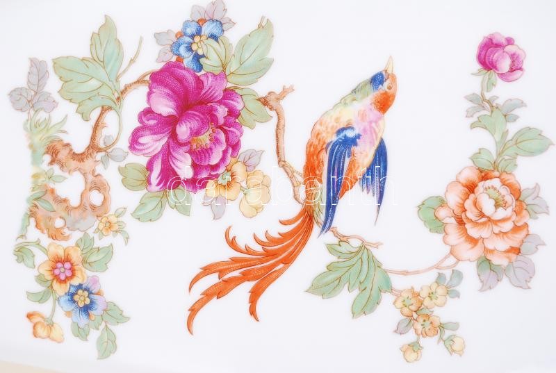Hollóházi jelzéssel ellátott virágokkal és madárral díszített nagymére...
