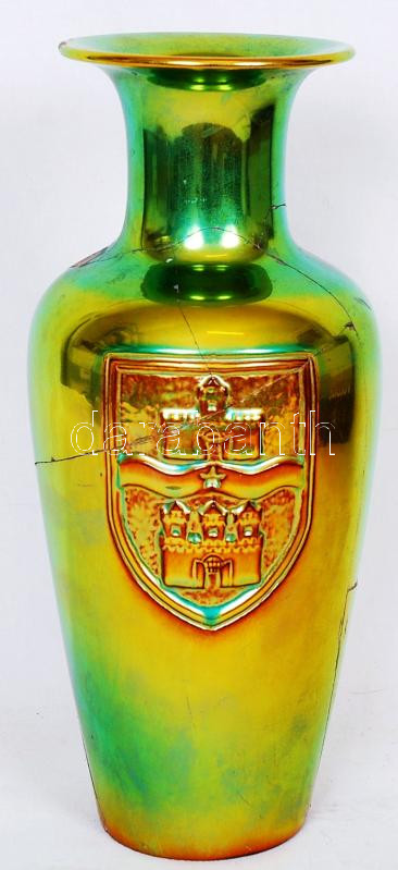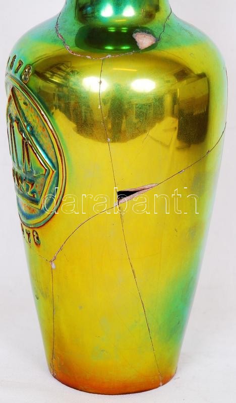 Zsolnay eozinos váza, több helyen sérült, m:28 cm