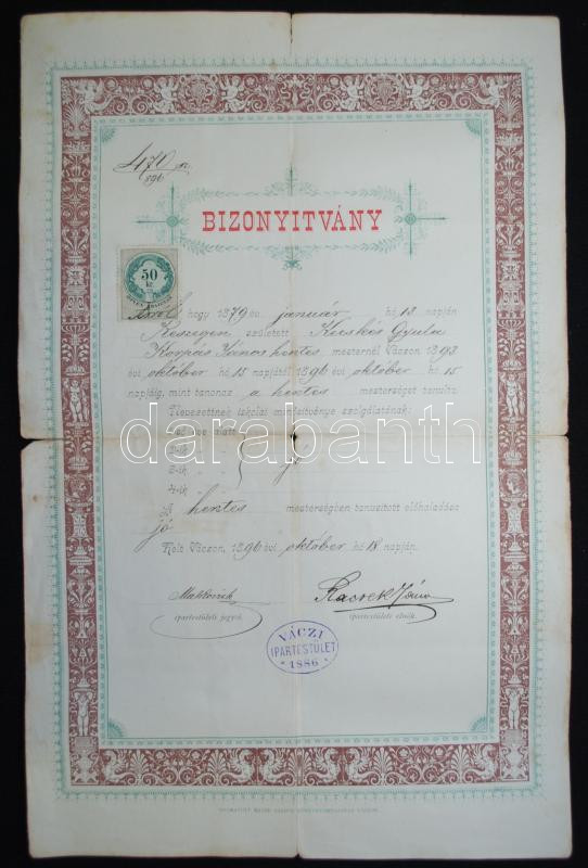 https://www.darabanth.com/en/175-Online-auction/175.0/Other-collectibles/Documents~1000018/1896-Hentes-mesterlevel~II565230