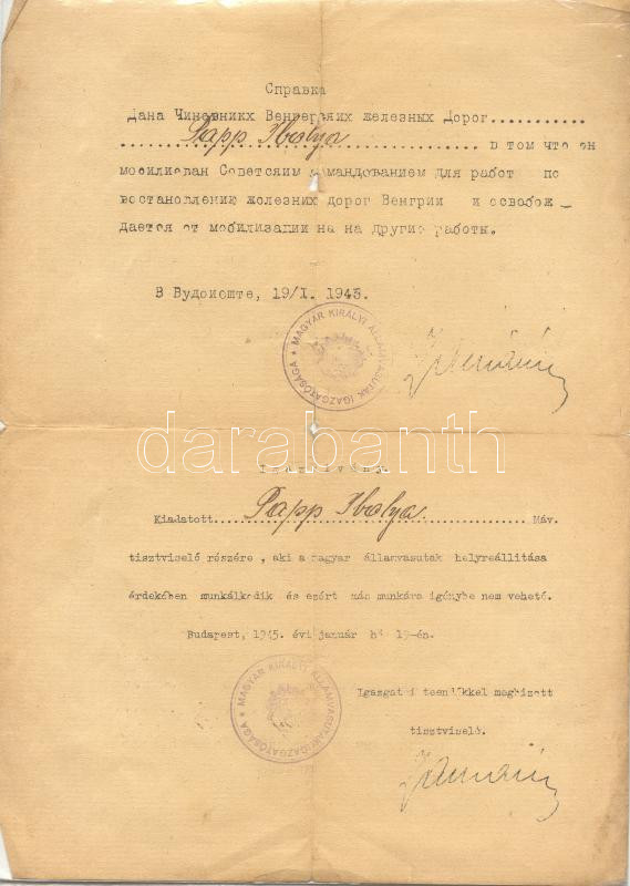 https://www.darabanth.com/en/175-Online-auction/175.0/Other-collectibles/Documents~1000018/1945-MAV-alkalmazottnak-kiallitott-mentesito-igazolasa-magyarul-oroszul~II604714