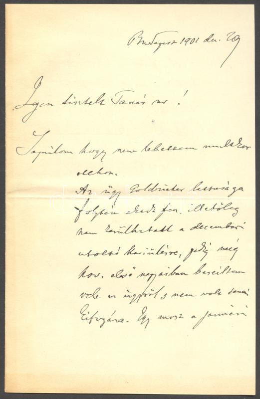 1901 Hatala Péter orientalista saját kézzel írt levele 2 beírt oldalon