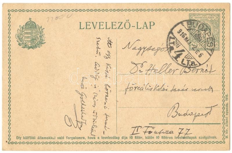 1934 Goldziher Ignác orientalista saját kézzel írt levelezőlapja Helle...