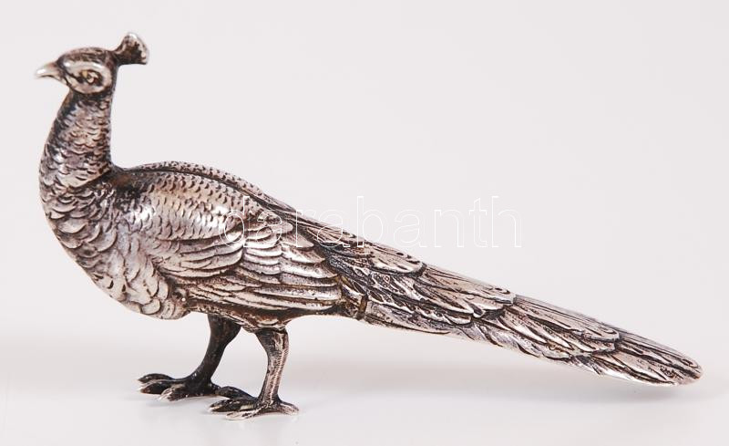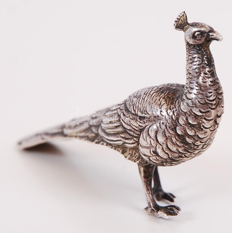 Description: cca 1900-1922 Ezüst (Ag) páva szobrocska a hanaui J. Kurz & Co. műhelyéből, monarchiabeli linzi behozatali jeggyel /