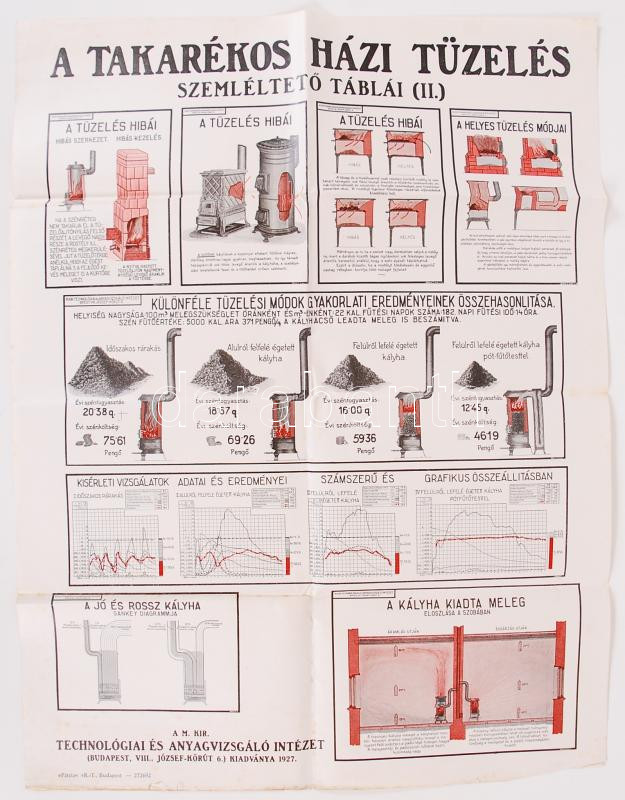 1927 A takarékos házi tüzelés szemléltető táblái nagyméretű plakát 50x...