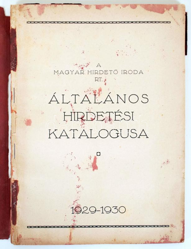 1929 A Magyar Hirdető Iroda rt. Általános Hirdetési Katalógusa különbö...